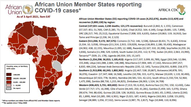 • Coronavirus: African Union Member States reporting COVID-19 cases as of 3 April 2021, 9 am EAT (2)