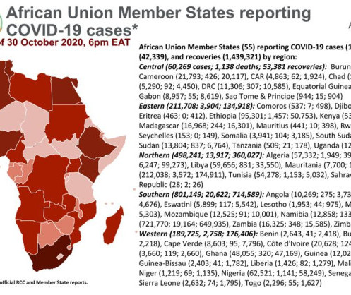 • Coronavirus: African Union Member States reporting COVID-19 cases as of 30 October 2020, 6 pm EAT (1)