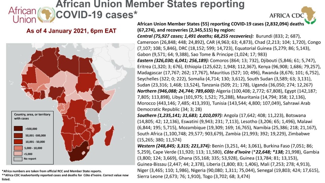 • Coronavirus: African Union Member States reporting COVID-19 cases as of 4 January 2020, 6 pm EAT (2)