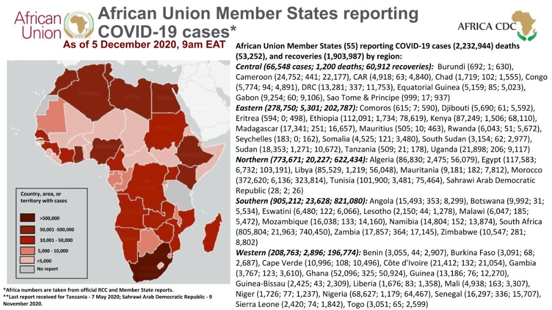 • Coronavirus: African Union Member States reporting COVID-19 cases as of 5 December 2020, 9 am EAT