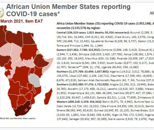 • Coronavirus: African Union Member States reporting COVID-19 cases as of 7 March 2021, 9 am EAT