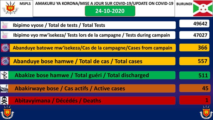 • Coronavirus - Burundi : COVID-19 mettre à jour 24 octobre 2020