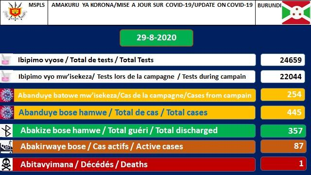 Coronavirus - Burundi : COVID-19 mettre à jour 29 août 2020