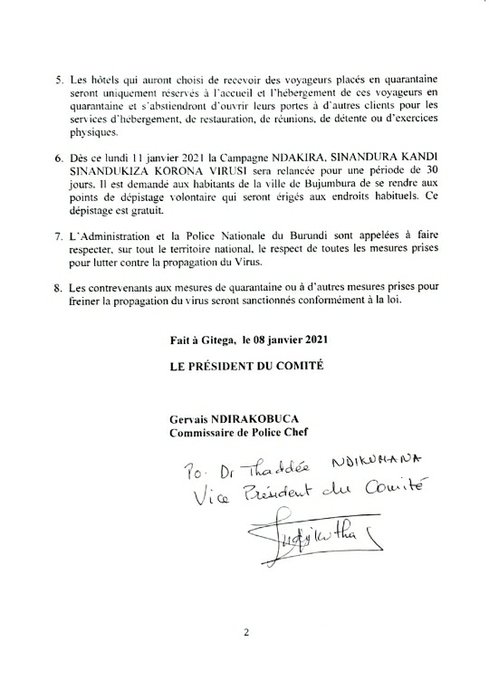 • Coronavirus - Burundi : COVID-19 mettre à jour 8 janvier 2020 (2)