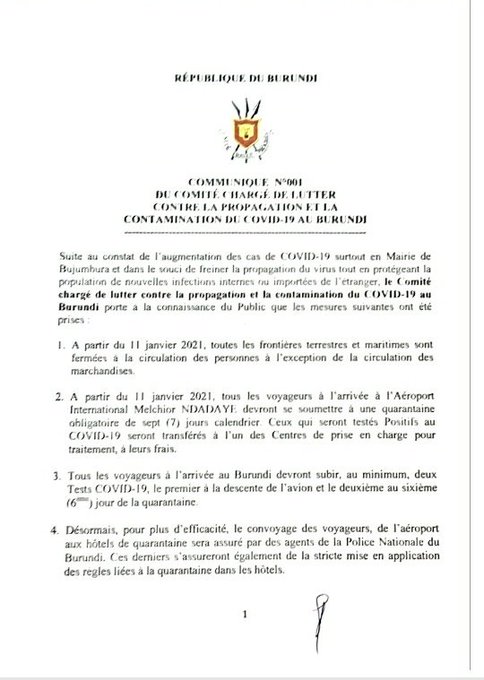 • Coronavirus - Burundi : COVID-19 mettre à jour 8 janvier 2020 (1)