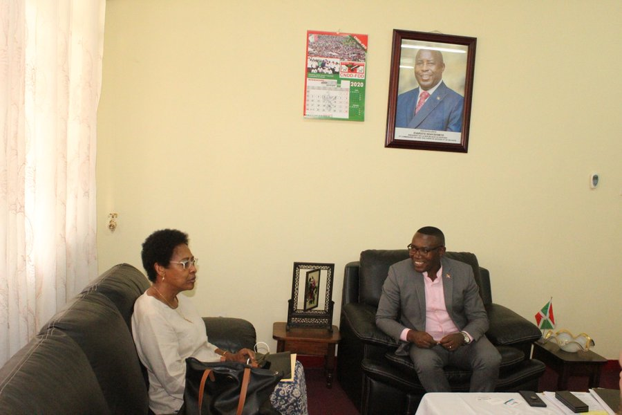 Ce Lundi 10 août 2020, le Ministre Dr. Thaddee a reçu en audience la chargée d'affaires U.S Embassy Burundi. Elle était venue féliciter le ministère et à travers ce dernier le Bureau du Premier Ministre pour les résultats atteints depuis le début de la campagne de dépistage de masse du COVID-19.