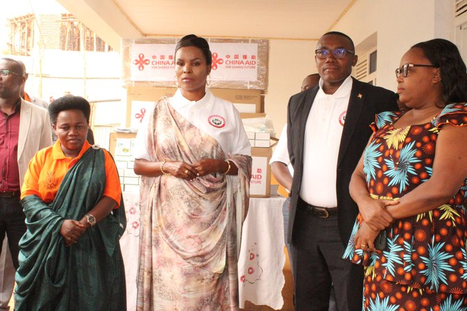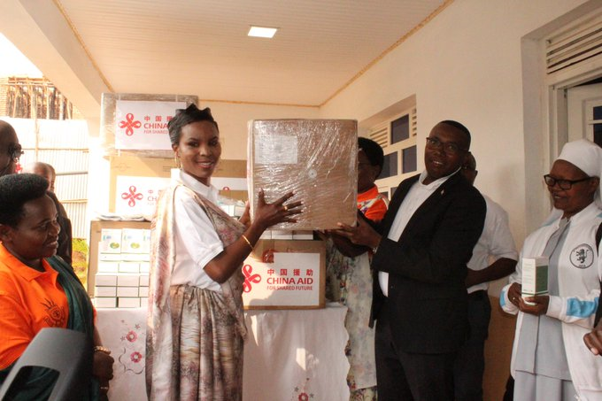 Cérémonie de remise d'un don de matériel de prévention contre la COVID-19 110 termoflash, 16.800 masques chirurgicaux et combinaisons de protection individuelle offert au Ministère de la Santé Publique Burundi (MSPLS) par S.E la Angeline Ndayishimiye Ndayubaha Présidente de la Fondation Bonne Action Umugiraneza.