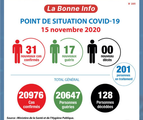 • Coronavirus - Côte d'Ivoire : Point de la situation COVID-19 du 15 novembre 2020
