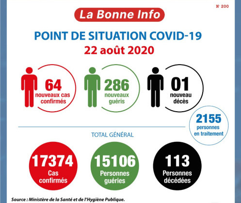 Coronavirus - Cote d’Ivoire : Point de la situation COVID-19 du 22 août 2020