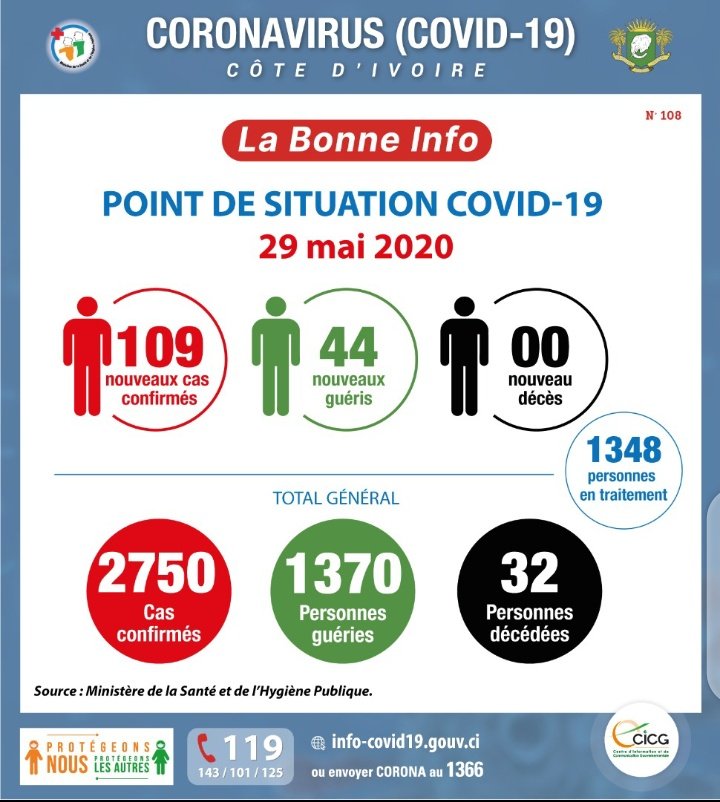• Coronavirus - Côte d'Ivoire : Point de la situation Covid-19 du 29 mai 2020