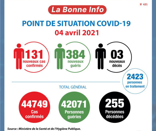 Coronavirus - Côte d'Ivoire : Point de la situation COVID-19 du 4 avril 2021