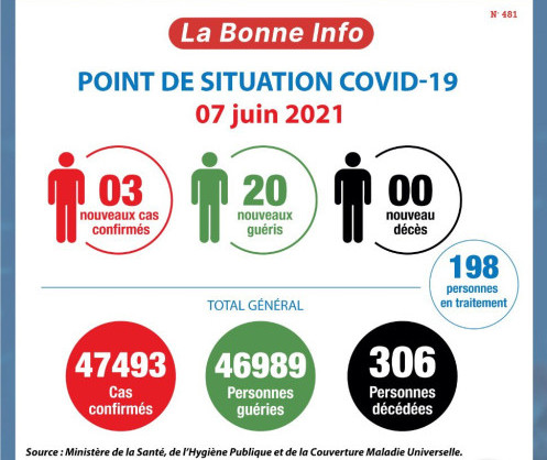 Coronavirus - Côte d'Ivoire : Point de la situation COVID-19 du 7 juin 2021
