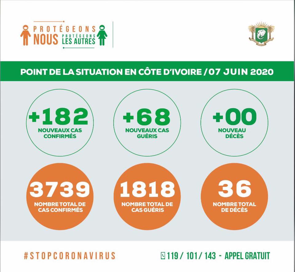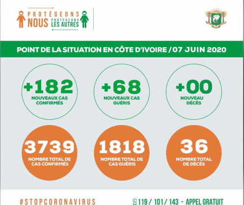 Coronavirus - Côte d'Ivoire : Point de la situation du dimanche 07 juin 2020