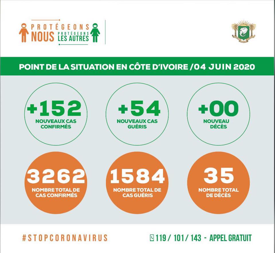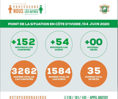 Coronavirus - Côte d'Ivoire : Point de la situation du jeudi 4 juin 2020