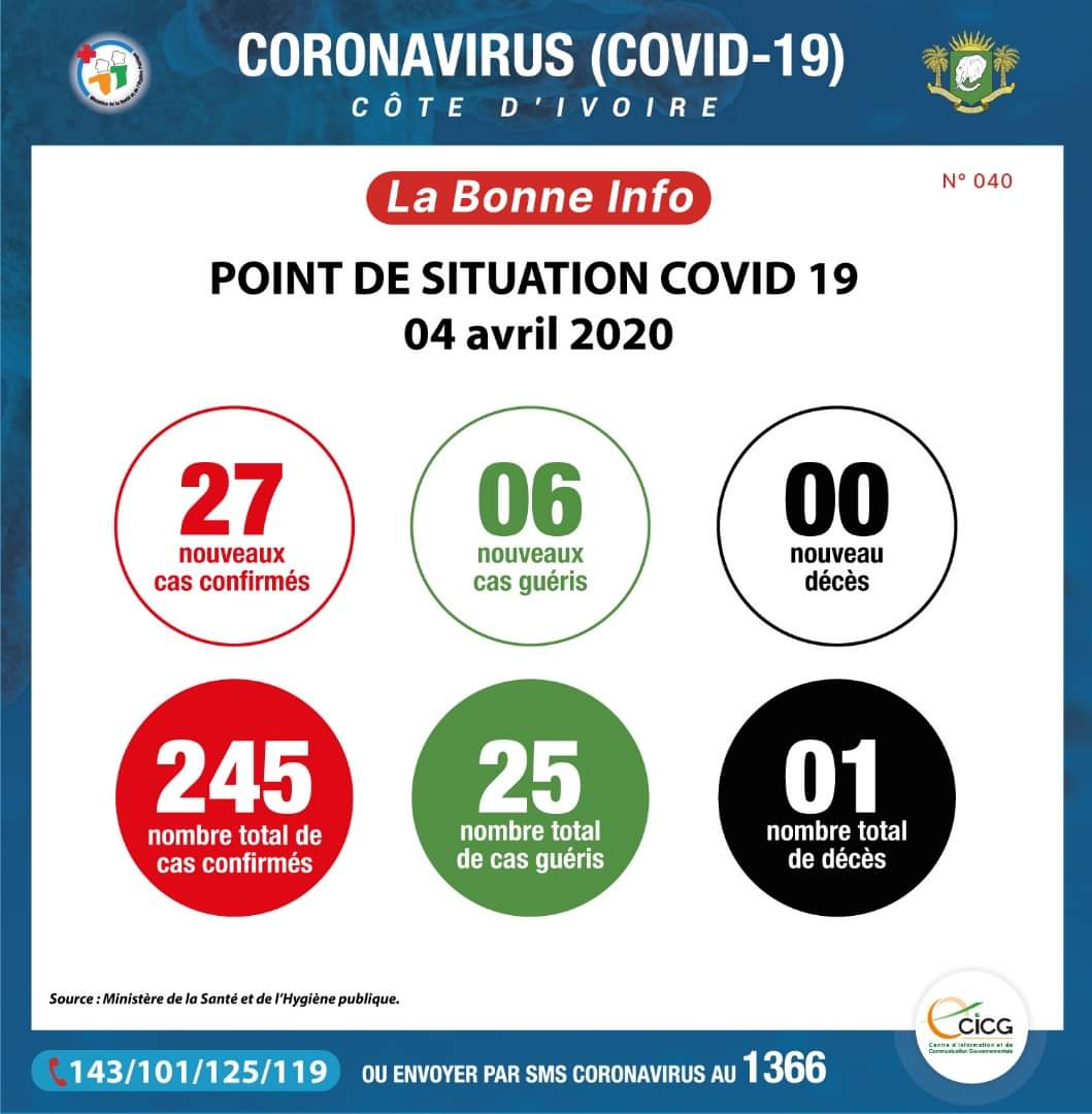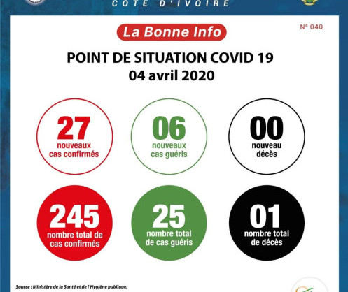 • Coronavirus - Côte d'Ivoire : Point de situation COVID-19 04 avril 2020