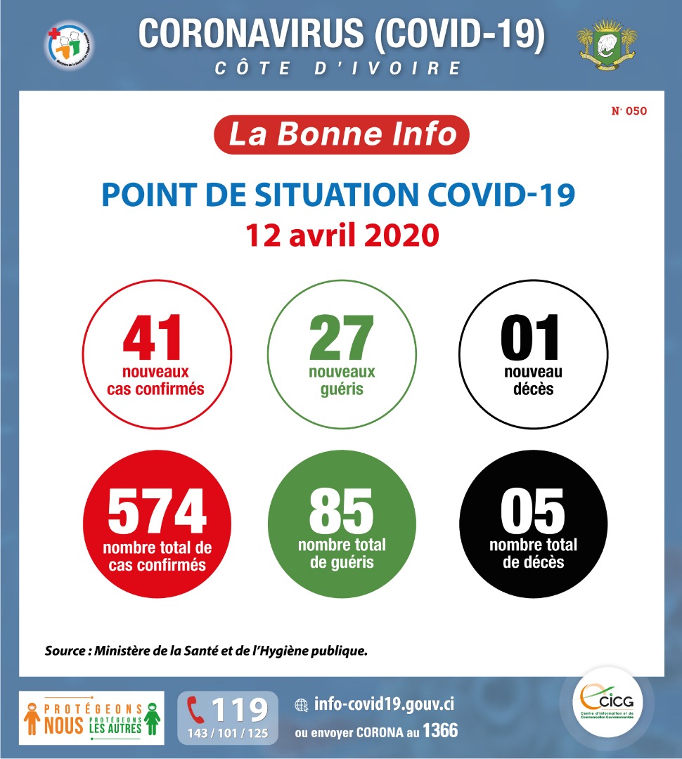 • Coronavirus - Côte d'Ivoire : Point de situation COVID-19 12 avril 2020