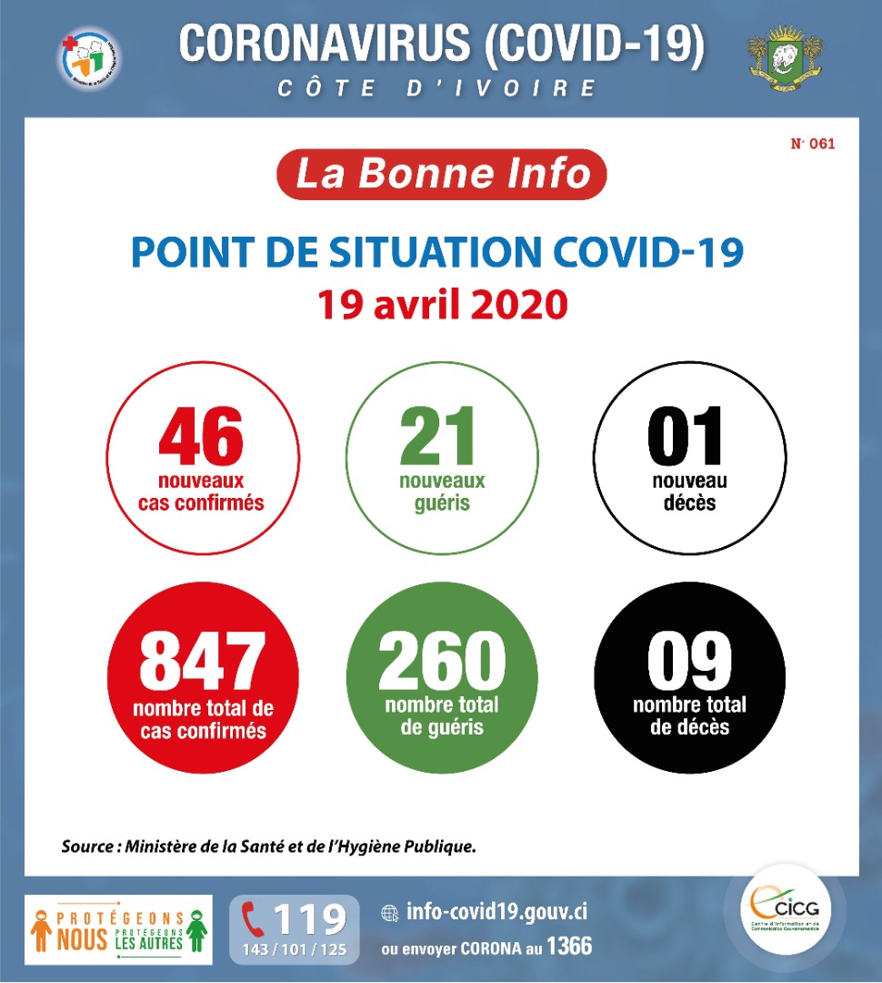 • Coronavirus - Côte d'Ivoire : Point de situation COVID-19 19 avril 2020