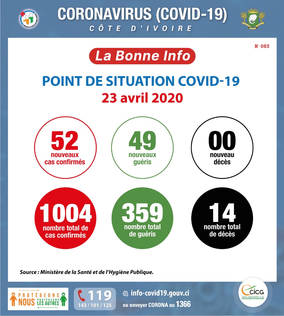 • Coronavirus - Côte d'Ivoire : Point de situation COVID-19 23 avril 2020