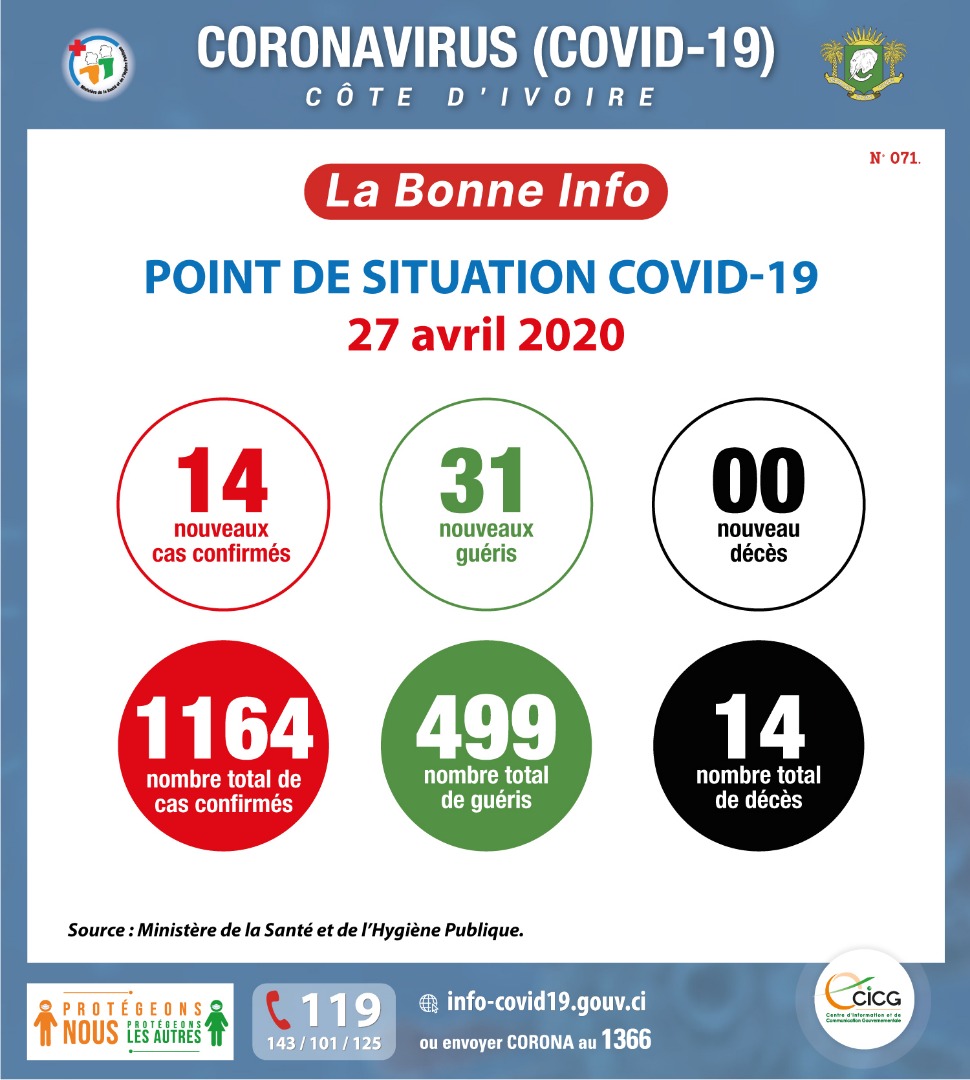 • Coronavirus - Côte d'Ivoire : Point de situation COVID-19 27 avril 2020