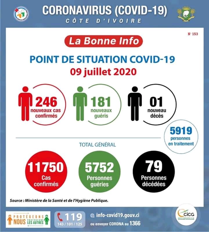 Coronavirus - Côte d'Ivoire: Point de la situation COVID-19 du 9 juillet 2020