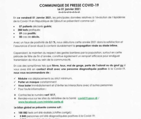 • Coronavirus - Djibouti : Point de Presse sur la Situation COVID-19 le 1 janvier 2021