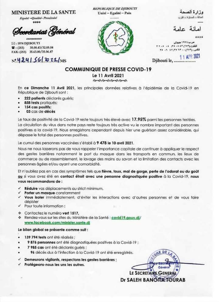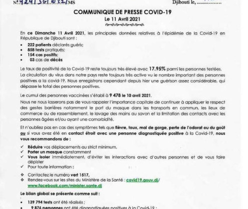• Coronavirus - Djibouti : Point de Presse sur la Situation COVID-19 le 11 avril 2021