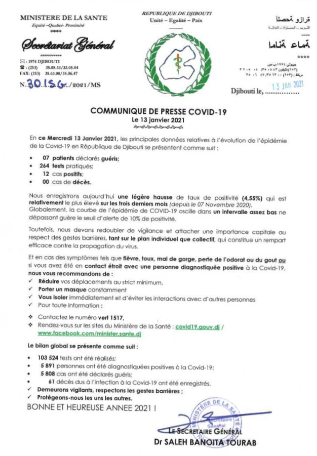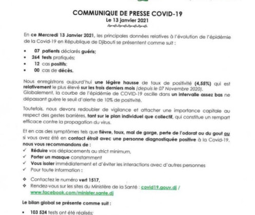 • Coronavirus - Djibouti : Point de Presse sur la Situation COVID-19 le 13 janvier 2021