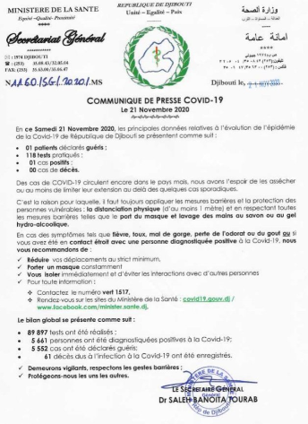 • Coronavirus - Djibouti : Point de Presse sur la Situation COVID-19 le 21 novembre 2020