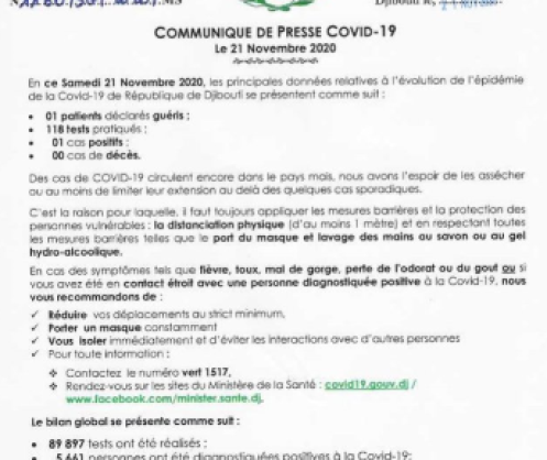 Coronavirus - Djibouti : Point de Presse sur la Situation COVID-19 le 21 novembre 2020