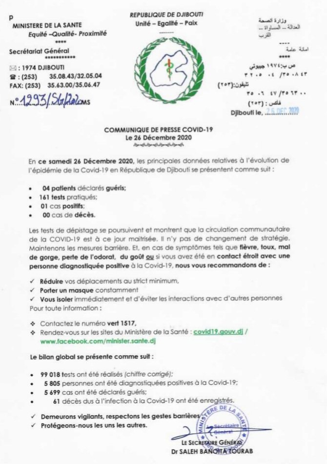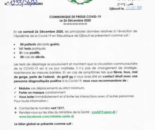 • Coronavirus - Djibouti : Point de Presse sur la Situation COVID-19 le 26 décembre 2020
