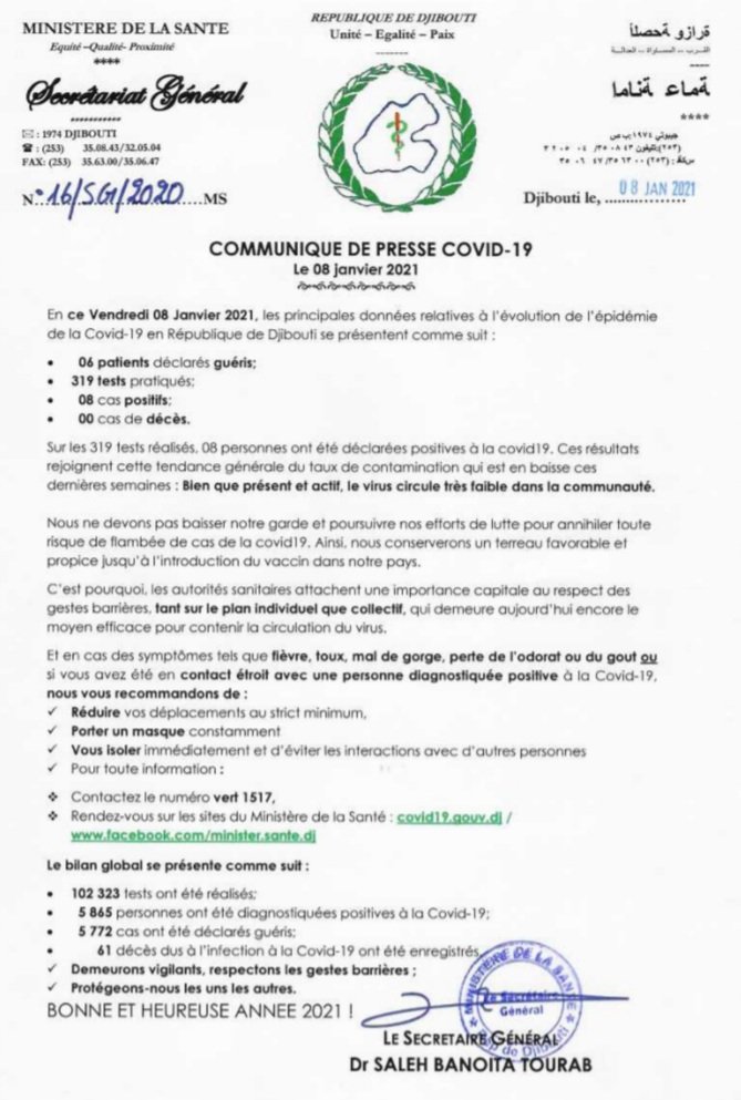 Coronavirus - Djibouti : Point de Presse sur la Situation COVID-19 le 8 janvier 2021
