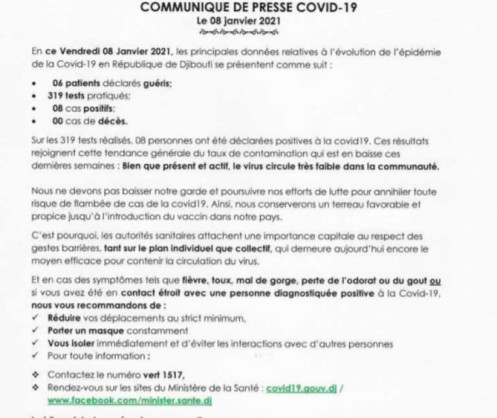 • Coronavirus - Djibouti : Point de Presse sur la Situation COVID-19 le 8 janvier 2021