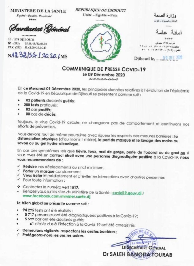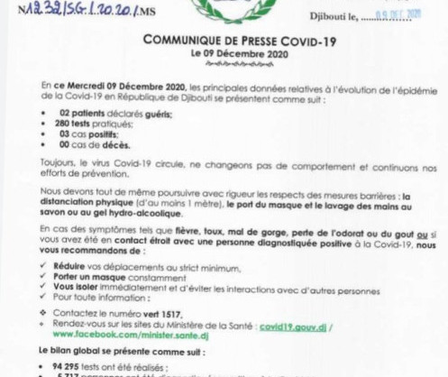 • Coronavirus - Djibouti : Point de Presse sur la Situation COVID-19 le 9 décembre 2020