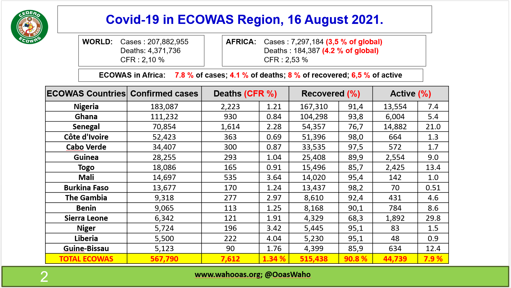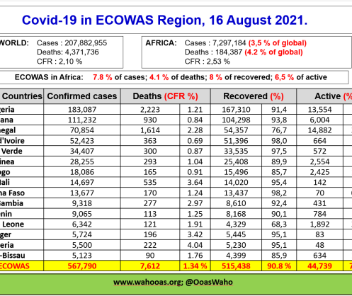Coronavirus - ECOWAS: COVID-19 update (16 August 2021)