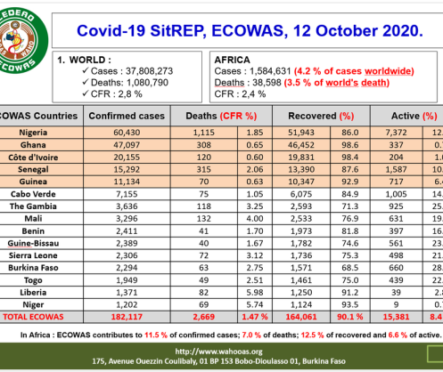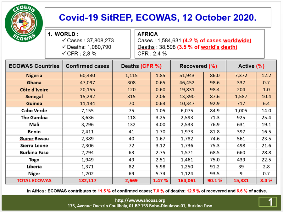 Coronavirus - ECOWAS: Daily update for 12 October 2020