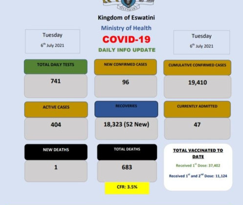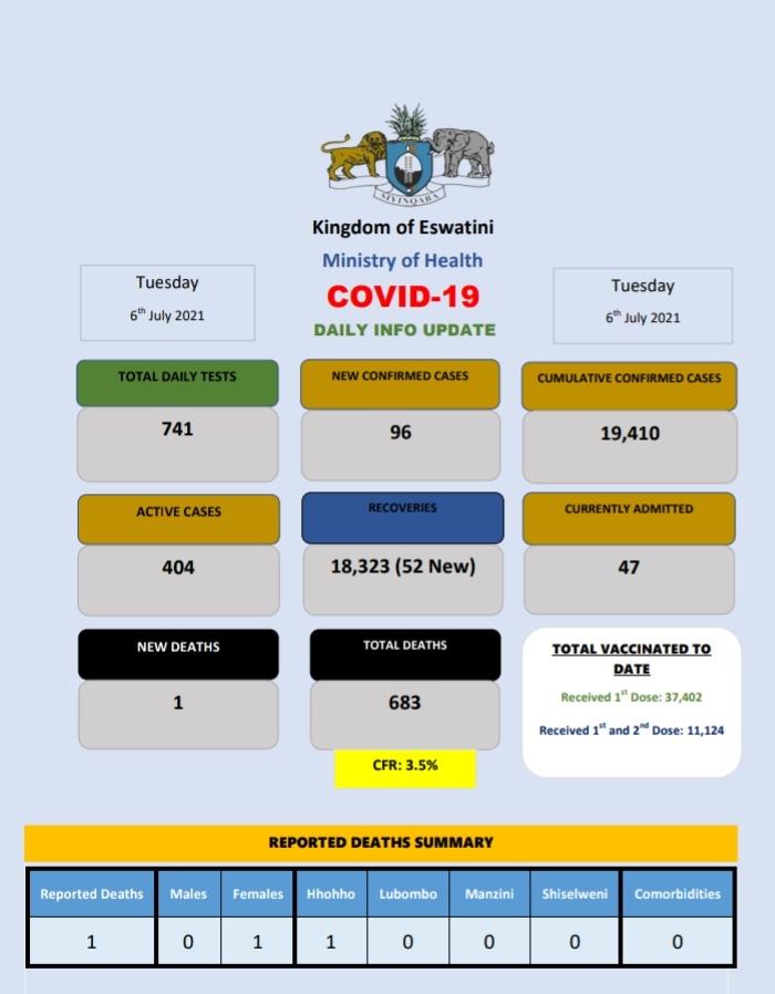 Coronavirus - Eswatini: COVID-19 Daily Info Update (06 July 2021)