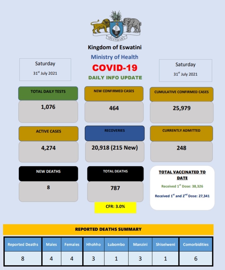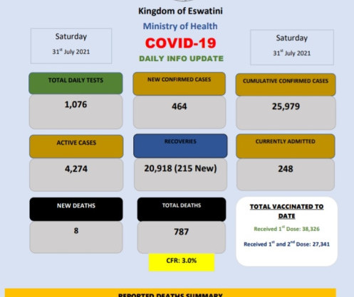 Coronavirus - Eswatini: COVID-19 Daily Info Update (31 July 2021)