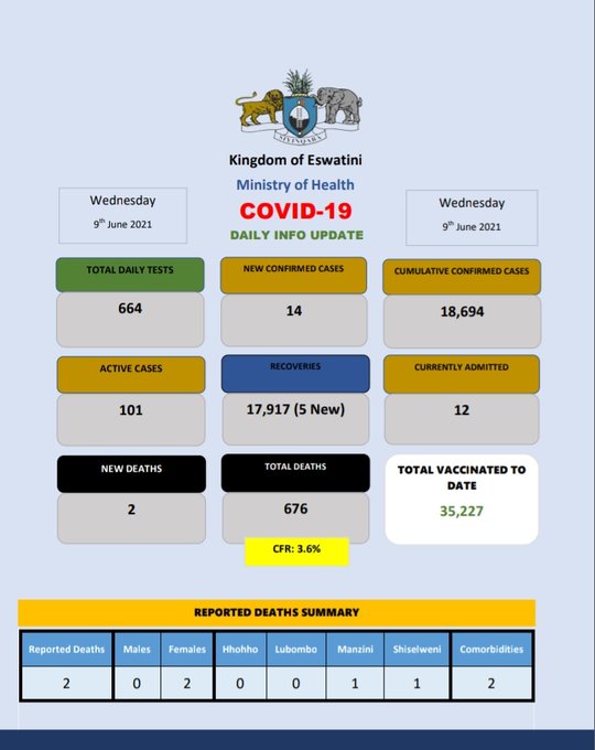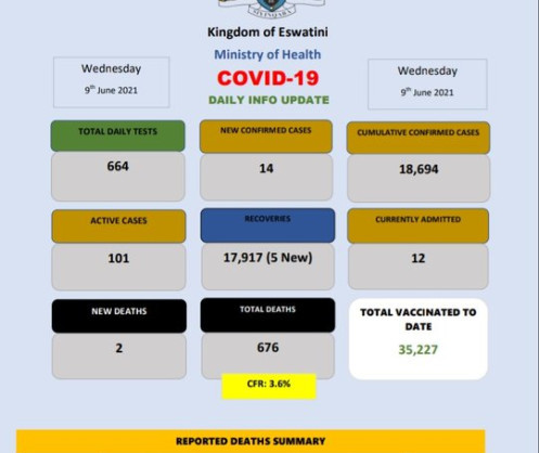 • Coronavirus - Eswatini: COVID-19 daily update (9 June 2021)