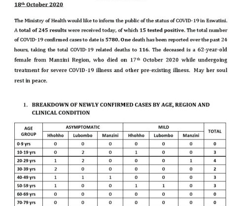 • Coronavirus - Eswatini: COVID-19 Update ( 18th October 2020) (1)