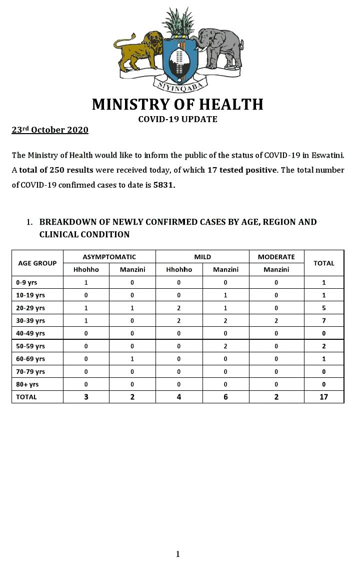 • Coronavirus - Eswatini: COVID-19 Update (23rd October 2020) (1)