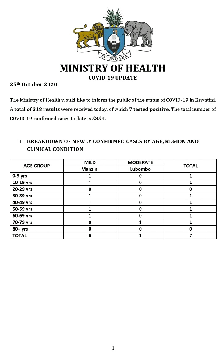 • Coronavirus - Eswatini: COVID-19 Update (25th October 2020) (1)