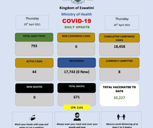 • Coronavirus - Eswatini: COVID-19 update (29 April 2021)