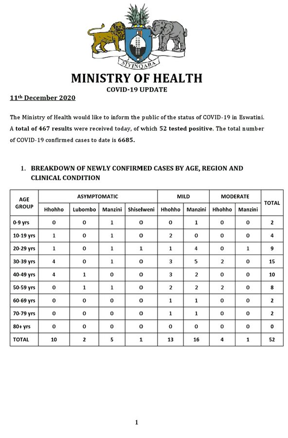 • Coronavirus - Eswatini: Minister of Health Lizzie Nkosi's COVID-19 update on 11 December 2020 (1)