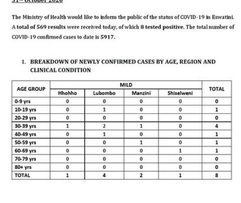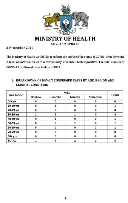 • Coronavirus - Eswatini: Minister of Health Lizzie Nkosi's COVID-19 update on 31 October 2020 (1)