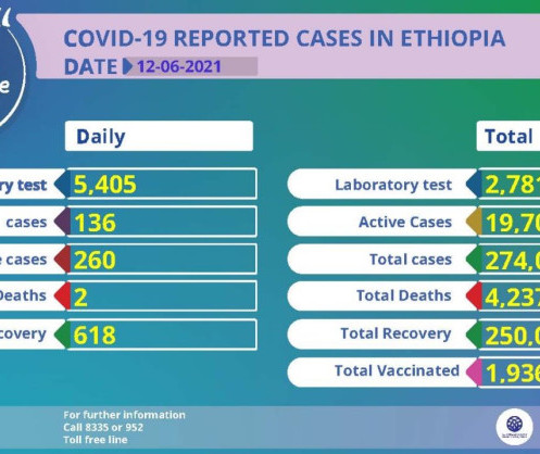 • Coronavirus - Ethiopia: COVID-19 Reported Cases in Ethiopia (12 June 2021)