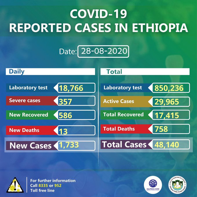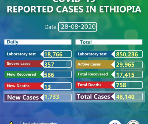 • Coronavirus - Ethiopia: COVID-19 reported cases in Ethiopia (28th August 2020)