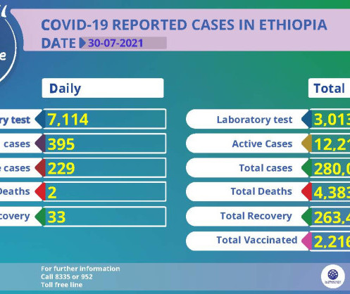 • Coronavirus - Ethiopia: COVID-19 Reported Cases in Ethiopia (30 July 2021)