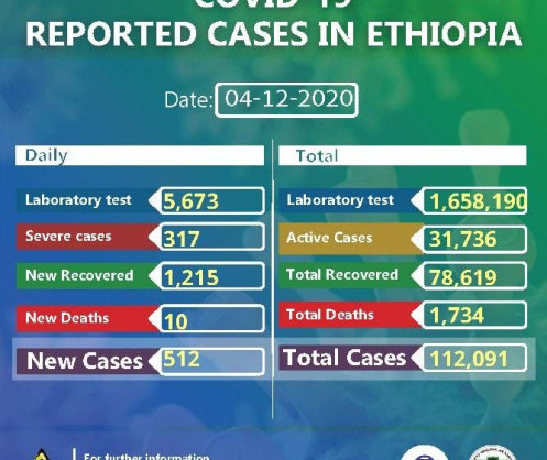 • Coronavirus - Ethiopia: COVID-19 reported cases in Ethiopia (4th December 2020)