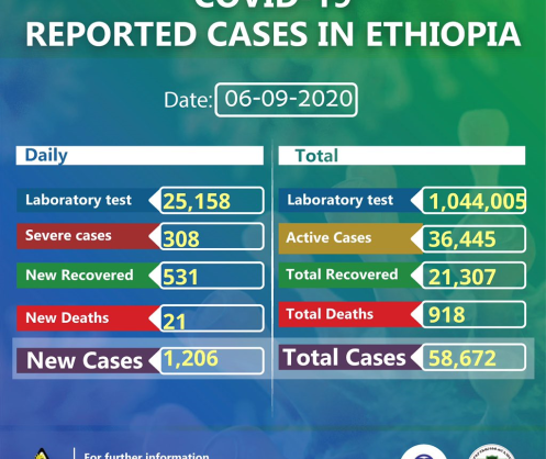 Coronavirus - Ethiopia: COVID-19 reported cases in Ethiopia (6th September 2020)