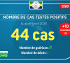 Nombre de cas testés positifs : 44